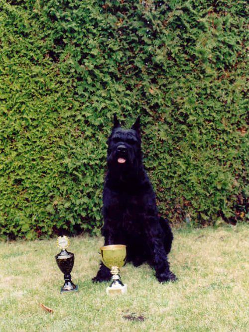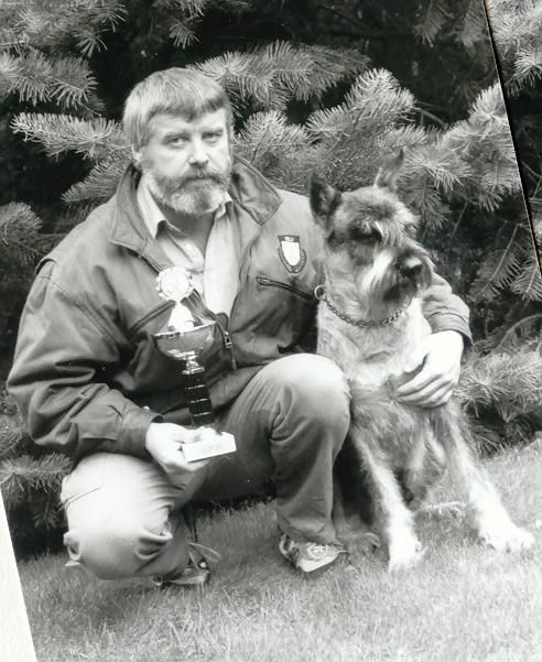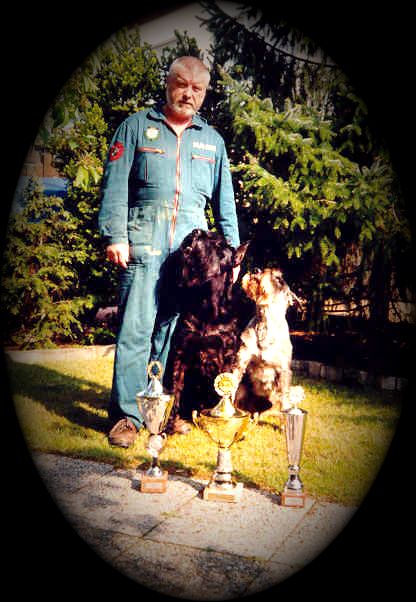 Seit der Umstellung auf FH sind immer mehr Hundeführer zu mir gekommen und wollten mit mir Fährten gehen.Das war der Anfang der heutigen Fährten - Seminare. Erst nur privat und mit Einzelpersonen,sind es später ganze Gruppen geworden. In dieser Zeit ist der schwarze Riesenschnauzer Eyck Ladior cz zu uns gekommen. Ein sehr schöner Hund. Eyck schaffte SchH 3, IPO 3, FH 1, FH 2 und wurde ein super Fährtenhund. Eyck war Bayerischer FH Meister und mehrfacher Vizemeister. Er nahm mehrfach an Deutschen Meisterschaften FH DVG teil, wobei er immer eine super Platzierung erreichte. Platz 4, Platz 5, Platz 7. Auch an der VDH-Qualifikation zum FCI-FH-Welt-Cup hat er mehrmals erfolgreich teilgenommen. Erfolgreich war er auch bei Deutschen FH Meisterschaften des PSK, wo er nur durch unsportliches Verhalten einiger Funktionäre daran gehindert worden ist, mehrfach Deutscher Meister zu werden. 1994 im Ober.Ramstadt wurde besprochen, dass auf dem Sieger Podest nur Hunde aus Deutscher Zucht stehen sollten. So hat es mir ein guter Bekannter erzählt, gleich nach der Besprechung. Er war bei der Sitzung dabei... Dadurch hatte ich kaum noch Möglichkeiten einmal aufs Trepple zu kommen.Eyck Ladior war Tscheche, Basko vom Föhrenwald von der Dissidenz.